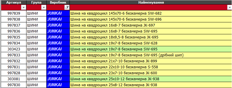Всі товари з надходження